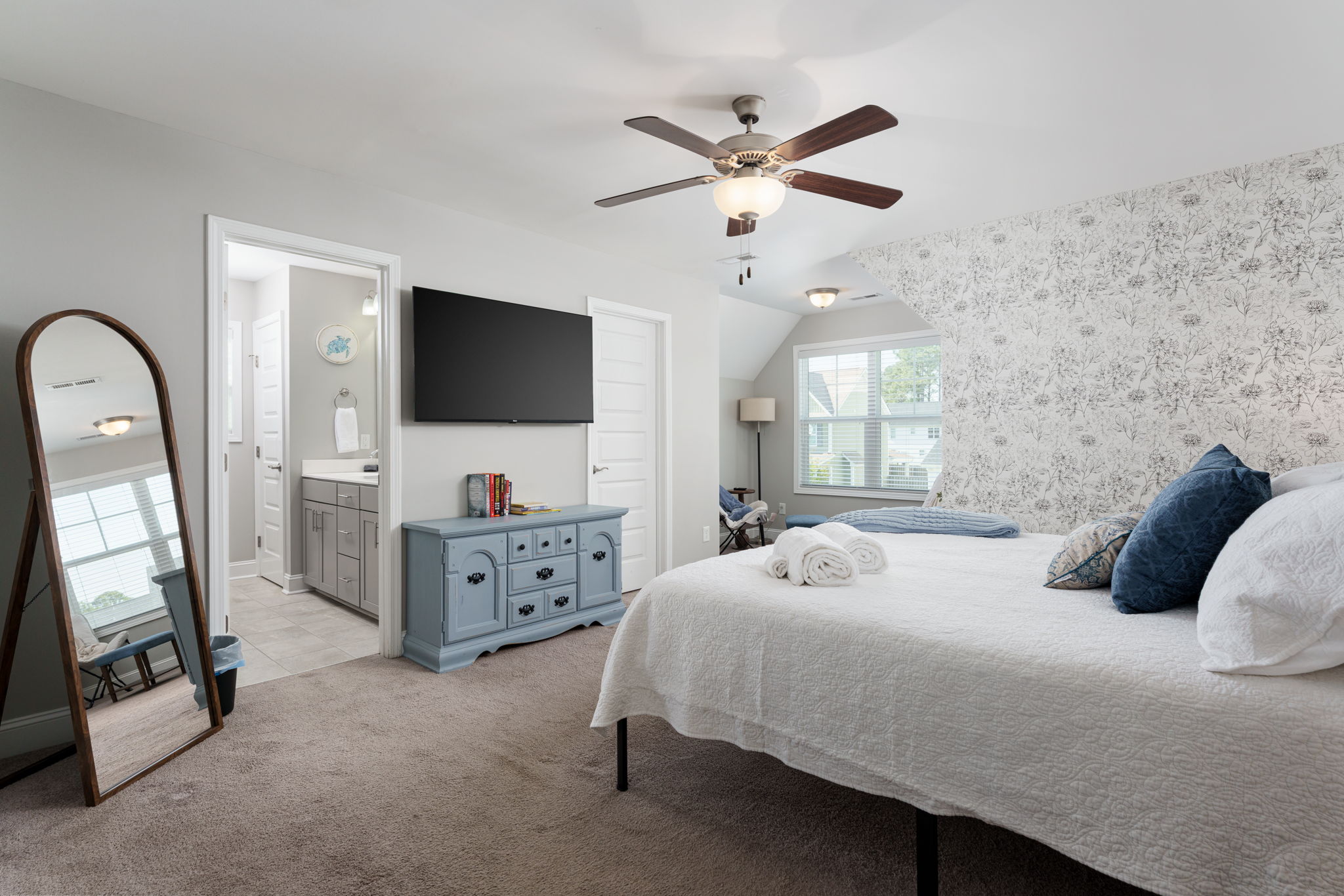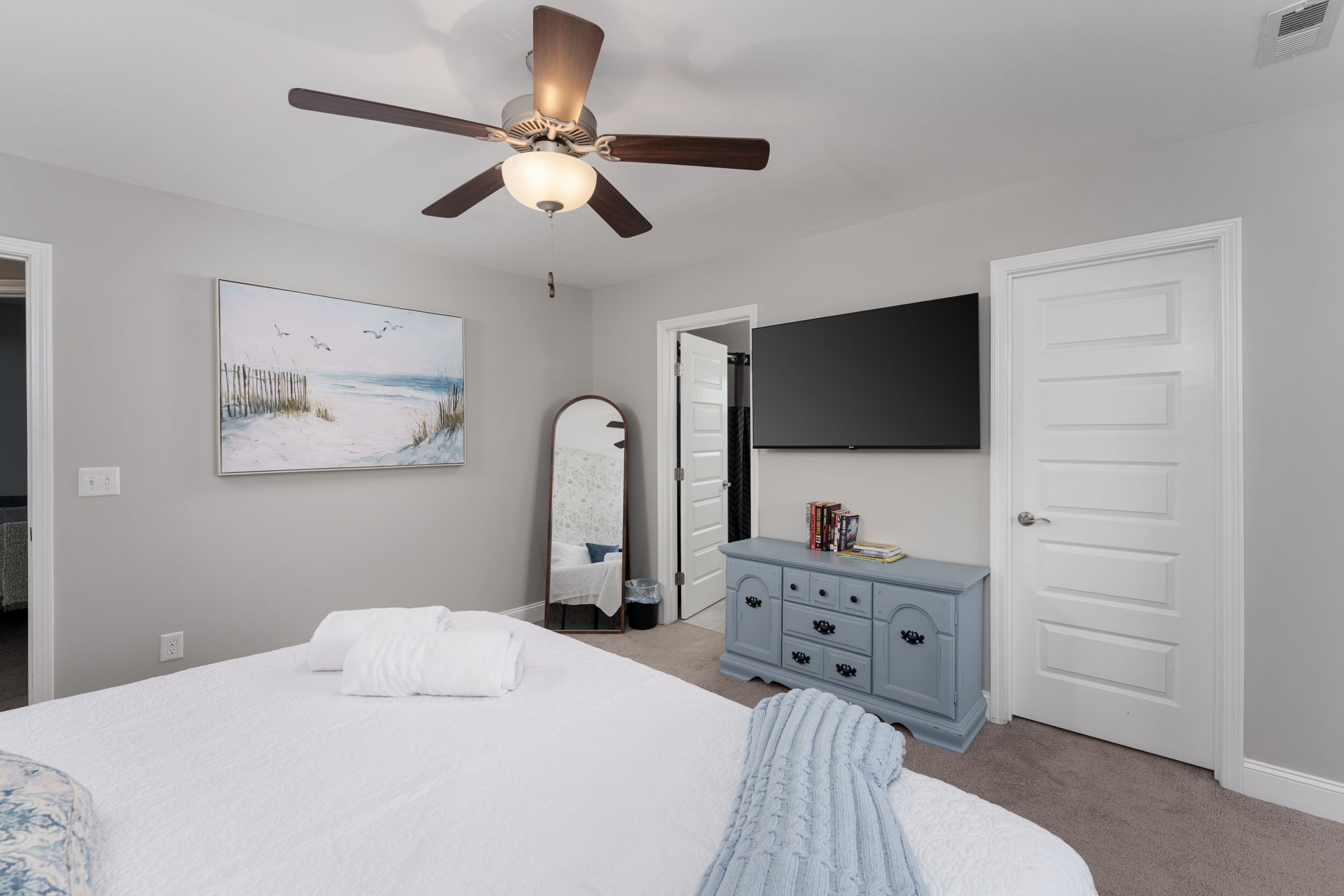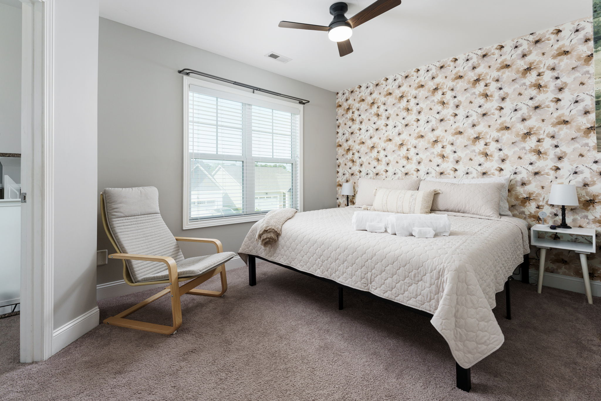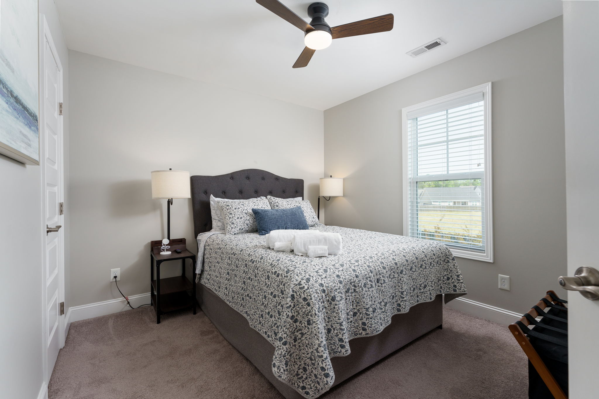 Designed for individuals, couples and friends, families, groups, your four-legged crew, traveling professionals, and longer stays, this home is designed for comfort, convenience, and easy living. We accept up to 8 guests. It's wedding season, so make sure you book your place to relax before and after all the festivities! Check-in is simple and contactless with a smart keypad lock. The neighborhood is residential and family-friendly, and the home backs up to open community space for a more private, peaceful backyard experience. Whether you’re visiting Wilmington for the beach, family time, a wedding, school events, or a longer stay, this home offers the space, privacy, and amenities to make your trip easy and memorable. CLOSE TO IT ALL You’re close to everything Wilmington has to offer: • Airport: 5 minutes • Wrightsville Beach: 11 miles/20-25 minutes • Blue Clay Bike Park: less than 5 minutes • Downtown Wilmington: 15 minutes • Mayfaire Town Center: 20 minutes • Porters Neck: 15-20 minutes • UNCW: 15 minutes • CFCC Main Campus: 10 minutes • CFCC North Campus: 5 minutes • Novant Medical Center: 15 minutes • Easy access to I-140 and the bypass Bringing your clubs? There are 20 golf courses within a 15-mile radius, with a mix of public and private. Check out world-famous Eagle Point Golf Club, Wilmington Municipal, Beau Rivage, Porter’s Neck Country Club or the many others around the area. COZY LIVING SPACE Large sectional couch and reclining chair lets everyone in your party gather around the big screen TV to watch your favorite show or movie, game, or stream music. Enjoy game night? We have several games to choose from in the welcome cabinet as well as puzzles to put together. Our pantry behind the couch includes a pack n play, BBQ utensils, outdoor serving dishes, and a few cleaning items for use during your stay. Flow from the living space to the high-top table to get all 8 of you around the table. Only two of you? Enjoy our breakfast bar attached to the fully equipped kitchen. Kitchen highlights: - Coffee Maker for a full pot of coffee, or individual pods – includes creamer, sugars, a sampling of regular and decaf Pods and ground coffee, hot chocolate powder and Pods - Hot water kettle with assortment of tea bags - Coffee mugs galore! - Crockpot - Toaster Oven/Air Fryer - Gas range - Blender - Cooking utensils - Indoor and separate outdoor plates and cups, wine glasses, and drink glasses - Eating utensils - Pots & pans, baking dishes, cookie sheets, and glass storage containers for left-overs - Cleaning wipes, sprays, kitchen sponge, paper towels, trash bags, dish soap, and dishwasher Pods - Fire extinguisher is under the sink Enjoy the half bath located off the kitchen for ease and convenience. Wanting to grill or eat outside? Our sliding doors lead straight to the backyard—perfect for indoor/outdoor living. BACKYARD OASIS Enjoy your own private outdoor space with: - Above-ground saltwater pool + deck, lounge chairs rocking chairs, and seating for up to 8 - Propane fire pit with seating for 8 - Grill-friendly setup for meals outside (seating for 8!) - Fully fenced yard (great for kids + pets) Enjoy the sunset and breezes as the evening winds down. Solar tiki lights come on as well as string lights around the pool to add to the cozy evening ahead. Ready to retire or just want to relax in your own space? Head upstairs! UPSTAIRS Upstairs you’ll find all four bedrooms and two full baths. Beds are made and ready for your stay. Enjoy our creature comforts like bath towels, shampoo/conditioner, bath gel, and other various sundry items for your stay. Each bedroom has a smart TV (sign in to your favorite streaming services!) and closet to keep you organized. PRIMARY BEDROOM #1 - King size bed (Medium Firm mattress) - ENSUITE private bathroom with two sinks, shampoo, conditioner, shower gel, bath towels, and makeup removal towels - Luggage rack, large walk-in closet, and dresser - 55” Smart TV - Cozy reading/lounge nook with separate Smart TV - Side tables and lamps with charging stations for headphone (e.g., Airpods), phone, and smart watch charging (just place your items on the dock and they should connect!) - Full sized mirror - Ceiling fan BEDROOM #2 - Two twin beds (Medium feel mattresses) - Shared nightstand with lamp and two charging stations - Closet with two hanging shelves to store folded clothes, luggage rack, and full-sized mirror - Smart TV - Ceiling fan BEDROOM #3 - Queen size bed (Firm mattress) – mattress topper in closet to soften the mattress - Two side tables with lamps and charging stations - Large walk-in closet and luggage rack - 43” Smart TV - Ceiling fan BEDROOM #4 - King bed (Medium mattress) - Two side tables with lamps and charging stations - Walk-in closet, dresser, and luggage rack - Cozy chair for relaxing - 55” Smart TV HALLWAY CLOSET - Beach Towels - Extra Blankets - Sunscreen and bug spray to use at The Hunt Hideaway pool and backyard - First Aid kit - Forgot your flip flops? We have several sizes to choose from, including size 12-13 and smaller for kids GUEST BATHROOM - Two sinks - Shower and bathtub - Shampoo, conditioner, shower gel, bath towels, and makeup removal towels LAUNDRY ROOM - Laundry room conveniently located near bedrooms - Stocked with Pods and dryer sheets for your use during your stay - Iron and Ironing board FITNESS CENTER IN GARAGE - Treadmill - Adjustable weights - Fitness bands POOL/BEACH ITEMS We offer items for the pool and beach. Please be respectful of keeping these items clean and damage-free so other guests can enjoy them after you. - Beach chairs - Beach mats/towels (sand free) - Pool/Beach towels - Pool noodles/floating loungers (please do NOT take to the beach, for Pool use only) - Kids beach toys - Small cooler SMART HOME - Keypad digital front door lock - Nest thermostat with upstairs + downstairs temperature control/zones - Smart lighting with motion sensors - SMART TVs PARKING - Drivewa
